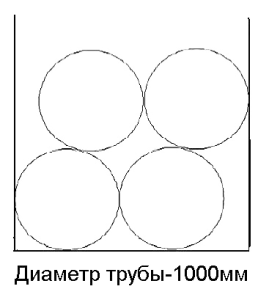 Труба Ø 1000Количество труб: 4 шт. Количество, п.м.: 12 п.м. – 48 п.м.; 12,5 п.м. – 50 п.м.; 13 п.м. – 52 п.м. Высота загрузки: 2,0м. Количество рядов: 2 шт. (в рядах по 2 шт.) |